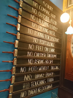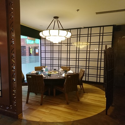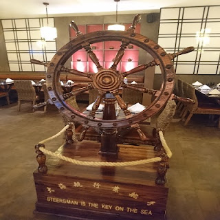 Also, right as you step into the outlet there's a life-size ship wheel proclaiming 'Steersman Is The Key On The Sea'. The place also has an enclosure or two thus providing for Private Dining Spaces in a sense.