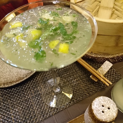 Shanghai Noon was presented in a tall glass and was flavorful with bits of apple lending it a refreshing taste.